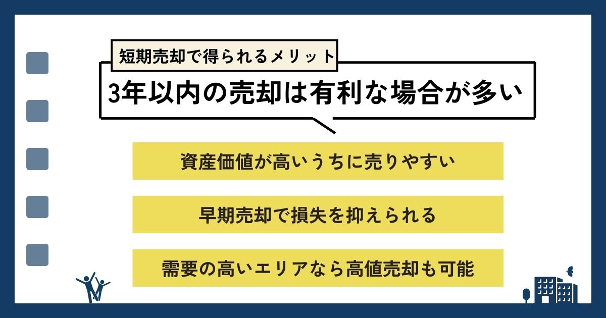 マンションを購入してから3年以内に売却を検討する場合、「どのタイミングが有利なのか」「短期売却でも損をしない方法はあるのか」と不安を抱く方は多いものです。