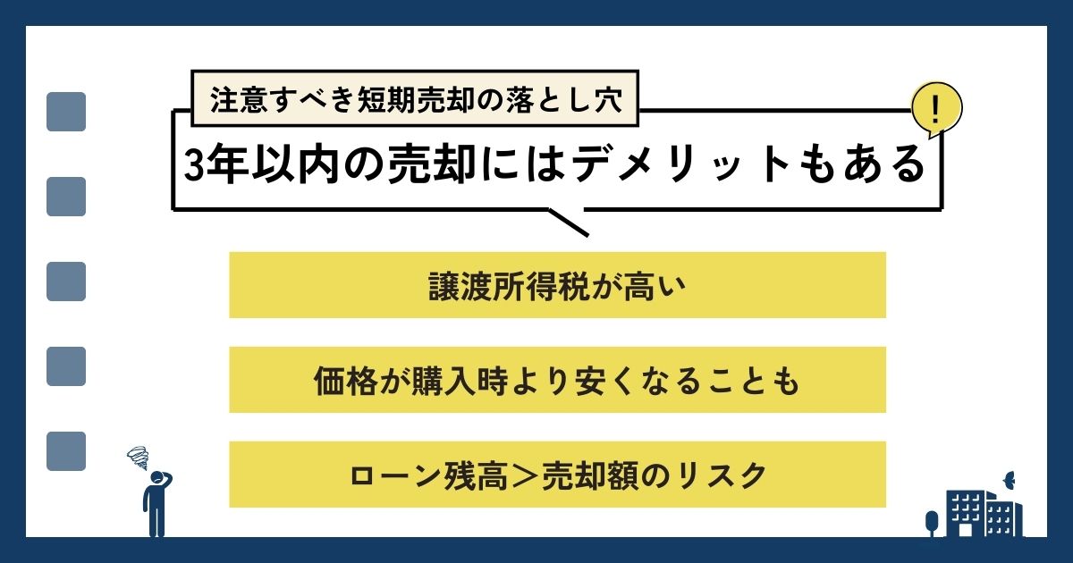 マンションを3年で売却するときには、どのようなことに注意したらよいのでしょうか。この章では、とくに気をつけたいポイントを3つ紹介します。