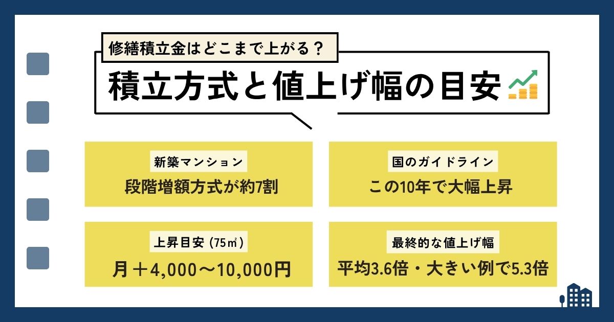 修繕積立金がどこまで値上げされるかは、マンションの規模や設備、管理状況などで変わるため一概には言えません。