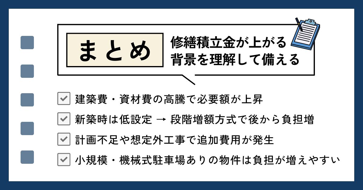 大規模修繕の前後で値上げが繰り返されるケースもあり、家計への影響は決して小さくないものです。
