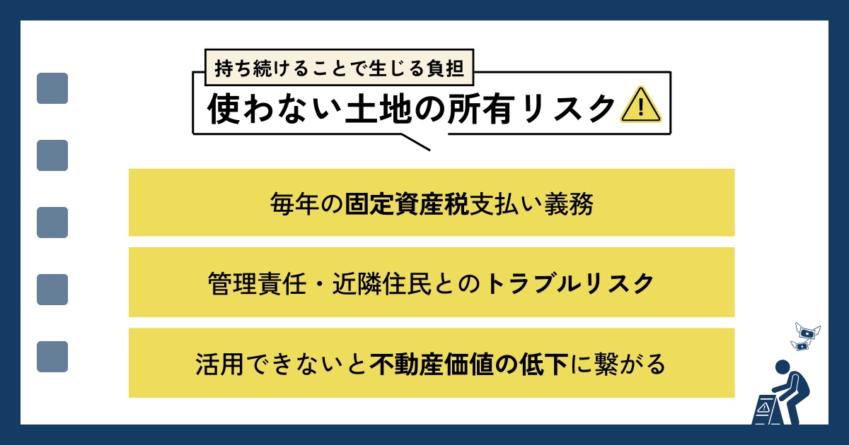不要な土地を放置していると、税金や管理義務などの負担が積み重なります。