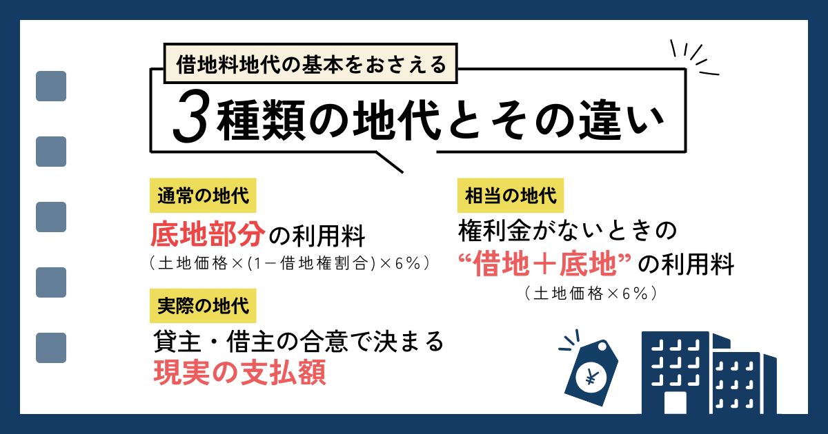 以下では、代表的な3つの地代の種類について具体的に解説します。
