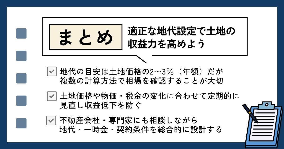 後ほど「地代以外に貸主が受け取れる費用の相場」の章で詳しく解説するため、ぜひ参考にしてください。
