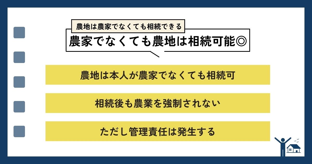 可能です。農業をしていなくても、法律上は誰でも農地を相続できます。
