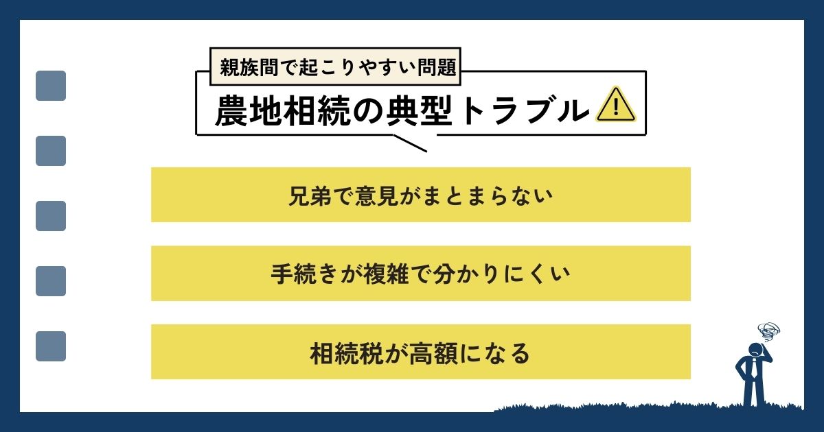 農地の相続は、書類や制度上の煩雑さだけでなく、人間関係のトラブルにも注意が必要です。