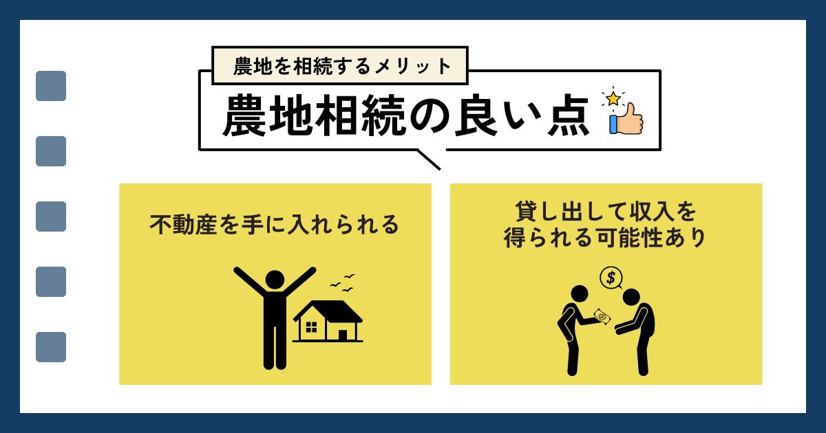 農地を相続した場合、農業を自身でしなくても、貸し出すことにより安定的な収入を得られる点もメリットです。