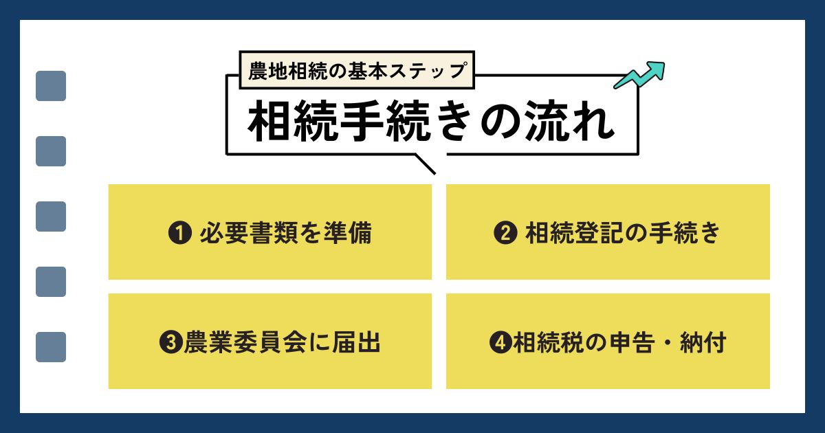 農地の相続は、一般的な土地とは異なり手続きが多いため、手順を理解しておくことも重要です。