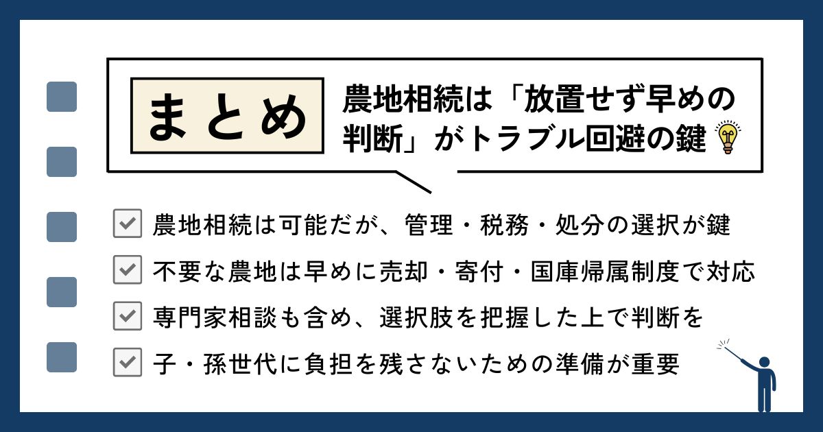 ぜひ農地相続に対する不安を解消し、最適な選択をおこないましょう。
